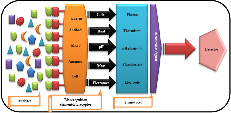 Leland C. Clark was the father of biosensors for the development of enzyme electrodes in the year 1962 [3]. After this invention, scientists from different fields like Very Large Scale Integration (VLSI), Chemistry, Materials Science and Physics have contributed by developing highly reliable and sophisticated biosensor based devices in medicine, diagnostics, biotechnology and agriculture. The applications of biosensors were also extended for detection and prevention of bioterrorism in military [4-6]. Aptamer based detection of mycotoxins in food samples have also revolutionized the safety aspect of food industry [7]. Harmful algal blooms (HABs), which consist of six major biotoxins, in oceans are posing threats to human beings. Biosensors have developed to detect such biotoxins produced from algae and other microorganisms in the harvested fish/shellfish from oceans [8]. Metal oxide core shell nanoparticle (WO3) based gas sensor for sensing acetone in diabetic patients who exhale acetone in their breath as a result of ketosis is also been developed [9].