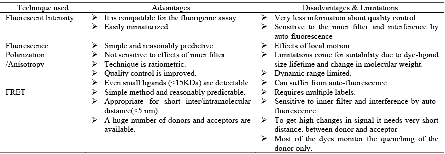 The advantages and limitations of fluorescent biosensors are given in Table 1.