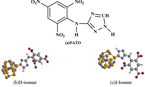 3-Picrylamino-1, 2, 4-Triazole (PATO) has been widely used for blasting and destroying in the wars, owing to its relatively high density. Synthesis and characterization of PATO have been reported in literatures [1-3]. The explosion phenomenon occurs because of the PATO’s molecular structure decomposition and its oxidation reaction with the oxygen of the atmosphere [4-6]. PATO is a solid nitroaromatic compound that is synthesized by implementing nitration process on the toluene. This molecule is a toxic yellow solid with high formation heat, due to the existence of many N-N and C-N bonds in its chemical structure [7-10]. One of the most useful properties of PATO is that it can be melted and mixed with other high energy density materials safely [11-13]. Due to the fact that PATO mixtures with oxygen-wealthy compounds can release more energy in comparison to pure PATO, in the 20th century, often a mixture of PATO with ammonium nitrate was used in the construction of military explosives [14-15]. Generally, the heat released from PATO is considered as a reference for evaluating other explosives because the heat of PATO burning is generated by the reaction between carbons and the atmospheric oxygen. PATO can be considered as a green and environmental friendly material because, after its combustion excessive N2 gas will be produced in the atmosphere instead of harmful and pollutant gases which are common products of other explosives’ combustion [16-19]. Adsorption energy of explosive molecules like 1, 3, 5-Trinitro perhydro-1, 3, 5-triazine (RDX), Octahydro-1, 3, 5, 7-tetranitro-1, 3, 5, 7-tetrazocine (HMX), and so on, with graphene and boron nitride (BN) sheet have been studied by density functional theory methods. These theoretical studies demonstrated that the BN sheet binding with molecules is firmer than graphene ones [20-22]. Also, the incitement of energetic materials has been investigated by time-dependent density functional theory (TD-DFT) [23-27].