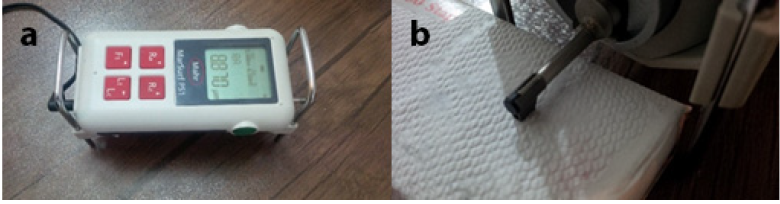 For electrospinning, the meshes must be fixed near the collector. Three electrospinning layers were fabricated: ONFS, PeTNFS and TeTNFS. Camera capture and their SEM images for three samples are shown in Fig. 4, which images for ONFS, PeTNFS and TeTNFS layers are shown in Fig. 4a, 4b and 4c respectively. (Scanning Electron Microscopy, JEOL, JSM-840, Japan) and the result of roughness test is shown in Table 1.