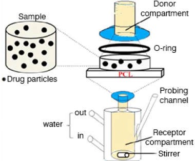 The Franz Cell chamber is an in-vitro skin permeation assay (Fig. 3), and the cell was used to determine the rate of drug release from nano-fibers web produced [37]. Phosphate buffer solution (PBS) was used as the phase receptor. The Franz Cell apparatus consists of two primary chambers separated by a membrane. Although, animal skin can be used as the membrane, human skin is preferable. But due to the problem of access to human or animal skin, fluctuations due to skin type, sampling location, gender and age of animal or human, the use of synthetic membranes is common and acceptable. Cellulose dialysis film is one of the most important membranes used for this kind of study [38]. To prepare the dialysis film (molecular weight cut-off 14000 was purchased from Sigma–Aldrich, USA), it must be soaked water (at 5°C) for 24 h.